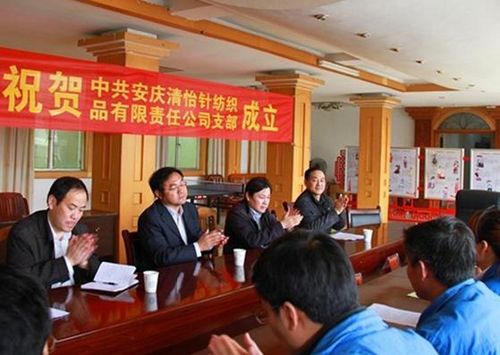 (圖為中共安慶清怡針紡織品有限責(zé)任公司支部成立現(xiàn)場(chǎng))