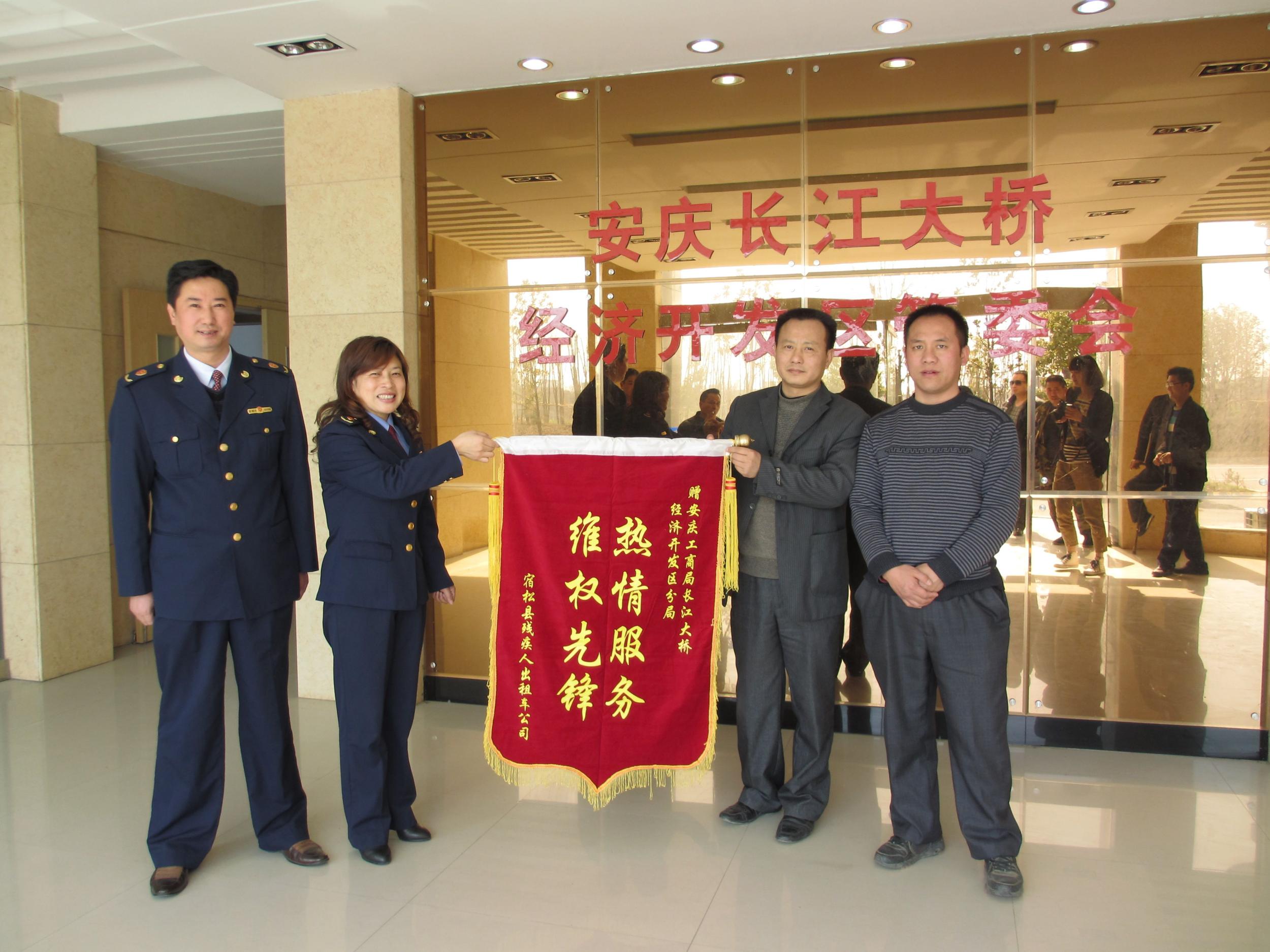 3月27日上午10時,大橋開發區管委會大樓來了一群特殊的人,他們手捧一面寫有“熱情服務、維權先鋒”錦旗,一見到大橋開發區工商分局干部,就緊握住他們的手,連聲道謝!“你們上次調解的事情已經全部兌現,錢也都拿到了!真的辛苦你們了!”