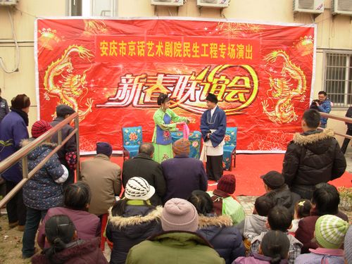 2月4日,宜秀區文化部門組織文藝演出到白澤湖鄉大楓敬老院,慶祝元宵節。市京話劇團的演員們表演了京歌聯唱、黃梅戲鬧花燈、打豆腐等經典名段和男女生獨唱等10余個節目。喜慶的鑼鼓、悠揚的音樂,吸引了四周鄉鄰紛紛前來觀看。雖然天氣寒冷,演出現場氣氛熱烈。近兩個小時的演出笑聲不斷、掌聲不斷,呈現一片歡樂喜慶的節日氛圍。鄉親們高興的說:“這樣的演出我們老百姓十分歡迎,希望多開展這樣的活動,豐富農民的節日文化生活。”