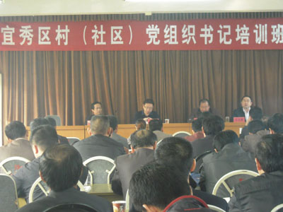為深入貫徹落實黨的十七屆六中全會及省、市、區(qū)黨代會精神,全面提高我區(qū)新一屆村(社區(qū))兩委負責人的工作能力和業(yè)務(wù)水平,扎實推進我區(qū)新農(nóng)村建設(shè)。11月14日至21日,宜秀區(qū)舉辦了全區(qū)村(社區(qū))“兩委”負責人培訓班,分兩批對全區(qū)58個村(社區(qū))新當選的書記、主任以及選派第一書記和11名大學生村官進行培訓。區(qū)委常委、組織部長程賢華多次到培訓班講話。