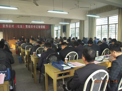 開班儀式上,沈先龍要求,在區、鄉兩級人大、政府和政協換屆及年內各項工作較為繁忙之際,舉辦全區村(社區)黨組織書記培訓班,大家務必充分認識培訓的重大意義,深刻認識到這次培訓是夯實黨的執政基礎的需要,是把握形勢發展變化的需要,是迎接新挑戰完成新任務的需要。并指出,在新的形勢下,要當好一名有所作為、群眾公認的村(社區)黨組織書記,一定要有強烈的黨性觀念,做黨在農村的“代言人”;一定要有強烈的發展觀念,做發家致富的“領頭雁”;一定要有強烈的宗旨觀念,做凝聚人心的“粘合劑”;一定要有強烈的集體觀念,做村級班子的“主心骨”;一定要有強烈的奉獻精神,做小康路上的“鋪路石”;一定要有強烈的自律意識,做遵紀守法的“當家人”。最后要求學員們一定要遵守紀律,靜下心來,認真學習,做到學有所獲、學以致用。(區委黨校)