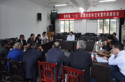 10月8日,楊橋鎮(zhèn)召開119地震災(zāi)后拆遷安置代表座談會,座談會以30戶不可居住戶為基礎(chǔ)推薦一名不可居住戶為代表,共推薦出19名不可居住戶代表到楊橋鎮(zhèn)政府進(jìn)行座談,并圍繞群眾不可居住戶關(guān)心的問題進(jìn)行座談和征求不可居住戶代表對宣店安置點、余灣安置點兩個安置點的建設(shè)和工程進(jìn)展情況以及后續(xù)不可居住戶的安置問題提出了很好的建議與意見。 (楊橋先鋒在線供稿 作者:江立新)