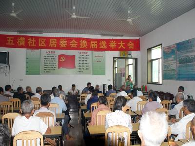 8月28日,按區委、區政府統一部署,五橫鄉5個村(社區)一次性全面完成第八屆村民委員會和第四屆社區居民委員會換屆選舉工作,共選舉產生村(居)委會班子成員23人(其中大學生村官1人),平均年齡43.70歲,配備35周歲以下的年輕干部3名,女性成員7名。新一屆村(居)委班子的綜合素質明顯提高,結構更為合理。