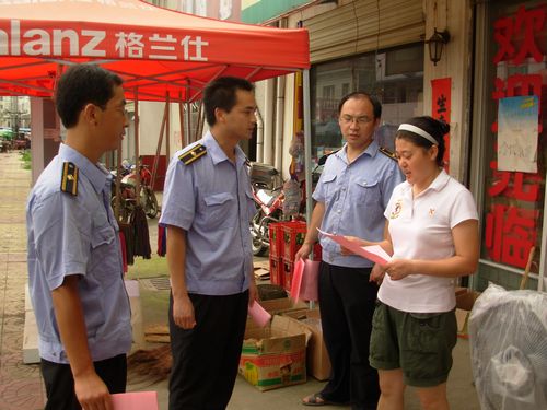 圖為8月11日,該鄉(xiāng)城管執(zhí)法人員向沿路商家發(fā)放宣傳單