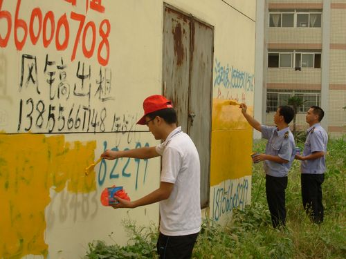 在文明創建活動中,宜秀區青年志愿者紛紛走上街頭清理牛皮癬、撿拾綠化帶上的垃圾。