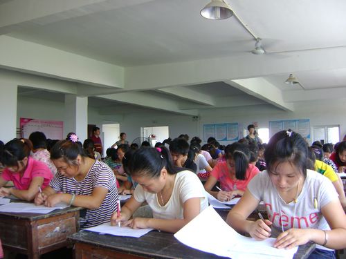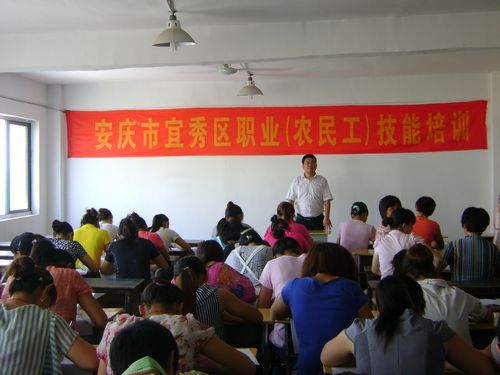 圖為8月2日,總投資3000萬元,落戶白澤湖工業園區的安慶香巢紡織有限公司員工崗前就業培訓時的情形。(張強林王貴珊王丁寶攝影報道)
