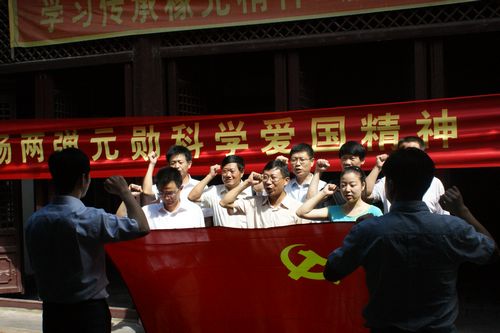 近日,宜秀區環保局機關黨支部的全體黨員,來到轄區五橫鄉兩鄧故居,瞻仰“中國原子彈之父”鄧稼先埋身戈壁荒原為中華民族核武器事業奉獻終身的革命事跡,緬懷中華民族的偉大復興的革命先輩的紅色足跡,感受中國共產黨艱苦卓越、波瀾壯闊的奮斗歷程和生生不息的優秀革命傳統。黨員干部們在鄧稼先故居里,面對鮮紅的黨旗莊嚴宣誓,再次重溫鏗鏘有聲的入黨誓詞,堅定為民服務為黨的事業獻身的信念。