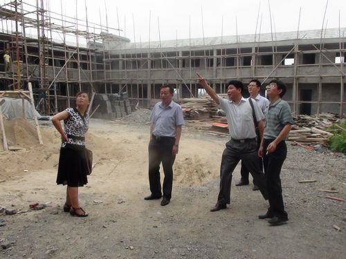 圖片說明:6月24日,宜秀區副區長程海東帶領檢查組對白澤湖鄉35項民生工程進展進度進行全面檢查。圖為該檢查組在白澤湖中心學校實地查看校安工程時的情景。(方華)