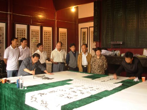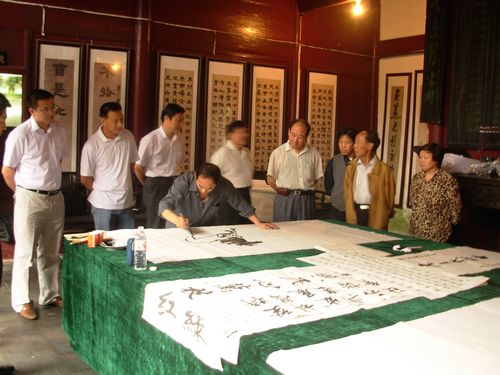 圖片說明:6月7日,宜秀區(qū)五橫鄉(xiāng)在鄧石如故居舉辦慶祝建黨90周年農(nóng)民書畫筆會(huì)。10多位土生土長的農(nóng)民書畫家現(xiàn)場揮毫潑墨,抒發(fā)對中國共產(chǎn)黨的熱愛,對社會(huì)主義祖國的贊美。供稿:陳秀根 王良海通聯(lián):宜秀區(qū)委宣傳部陳秀根