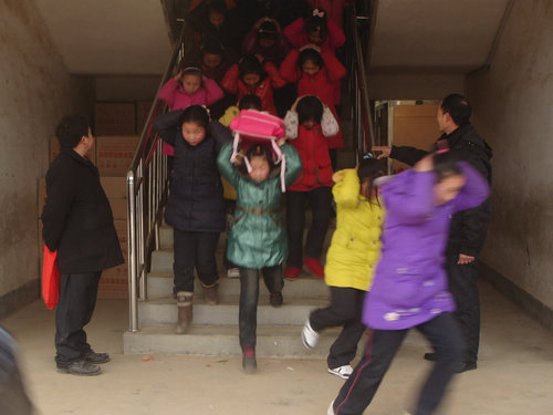 會后,學校還進行了地震應急疏散演練活動,整個活動分為緊急避難和緊急疏散兩部分。由于組織縝密,僅僅1分30秒,教學樓內的正在上課的學生們在在堂教師的組織下井然有序的疏散至操場空曠地帶,演練活動獲得了圓滿成功。