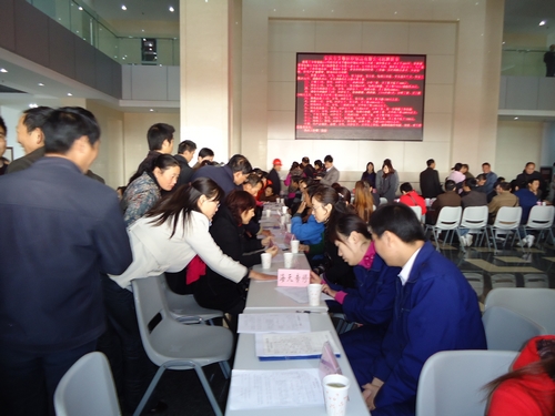 針對(duì)“雙百”城市建設(shè)過(guò)程中失地農(nóng)民增多的實(shí)際,10月30日上午,宜秀區(qū)組織開(kāi)展了秋季失地農(nóng)民專場(chǎng)招聘會(huì),來(lái)自市直、周邊縣區(qū)及區(qū)內(nèi)的近60家企業(yè)共提供就業(yè)崗位2000多個(gè)。在招聘會(huì)現(xiàn)場(chǎng)就有近500余人達(dá)成求職意向。圖為企業(yè)和求職者雙向選擇時(shí)的情景。