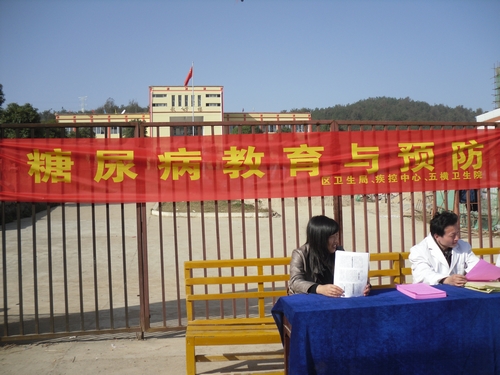11月12日,區衛生局組織區疾控和五橫鄉衛生院醫療衛生人員深入五橫中學,宣傳預防糖尿病等慢性病知識,傳播健康理念和生活方式。圖為開展糖尿病日宣傳現場。