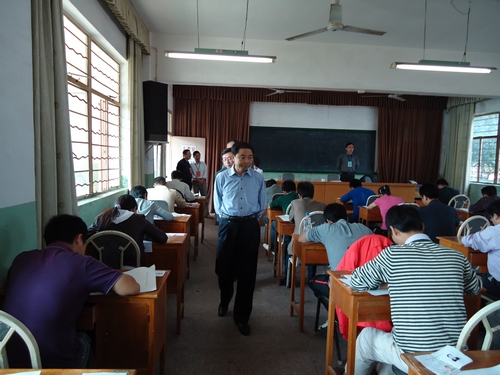 9月24日,安慶市公開選拔縣科級干部考試宜秀考點筆試工作在區委黨校舉行,來自全市各地的189名考生參加了當天上午競聘宜秀區衛生局副局長、區科協副主席及副主任科員崗位的筆試,區委書記夏吉苗、區委常委、組織部長程賢華到各考場進行了巡考。圖為巡考現場。