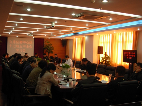 10月20日,宜秀區(qū)委中心組召開(kāi)十七屆五中全會(huì)學(xué)習(xí)會(huì),認(rèn)真學(xué)習(xí)五中全會(huì)公報(bào)。區(qū)委書(shū)記夏吉苗主持會(huì)議并就學(xué)習(xí)十七屆五中全會(huì)精神提出要求。區(qū)委中心組全體成員出席學(xué)習(xí)會(huì)。