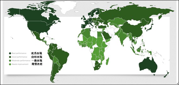 報(bào)告將中國列入良好表現(xiàn)(Good Performance)一檔,并將質(zhì)量安全保障能力歸為中國得分較高的7個(gè)指標(biāo)之一予以特別提示。而另一發(fā)展中人口大國印度排名則在70位,遠(yuǎn)落后于中國。
