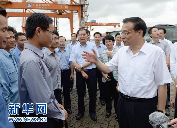 7月8日至10日,中共中央政治局常委、國務院總理李克強到廣西北海、欽州、南寧考察。這是7月8日,李克強來到欽州港,了解港口空箱、貨物吞吐等情況。 新華社記者馬占成攝(資料圖片)