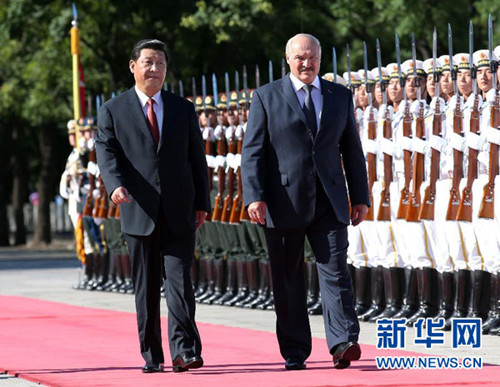 國家主席習近平16日在人民大會堂同白俄羅斯總統盧卡申科舉行會談。雙方就雙邊關系及重大國際和地區問題深入交換意見,達成高度共識。兩國元首宣布建立中白全面戰略伙伴關系。