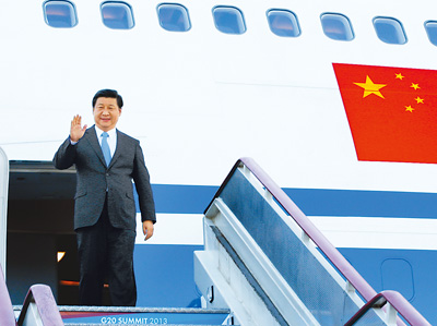 習近平是在結束對土庫曼斯坦的國事訪問后前往圣彼得堡的。離開馬雷時,土庫曼斯坦總統別爾德穆哈梅多夫率政府10位副總理到機場送行。成千上萬名民眾身著鮮艷民族服裝,揮舞花束和旗幟,歌舞歡呼,慶祝習近平訪問取得圓滿成功。