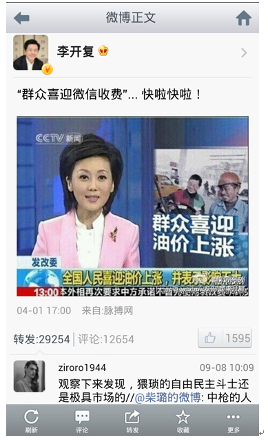 為了打擊中國官方宣傳渠道的公信力,您不斷轉發和傳播“全國人民喜迎油價上漲”“中國電信要向微信用戶收費”等謠言,并公開表示“謠言就是遙遙 領先的預言”,對這些事情您從未道歉,或者正面回應過網友質疑,這和您自詡反對謠言的言辭形成了鮮明的對比。對此您應該給出一個合理的解釋,您到底是喜歡 謠言還是反對謠言?