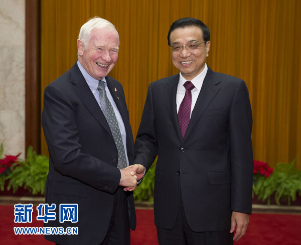 10月18日,國務院總理李克強在北京人民大會堂會見加拿大總督約翰斯頓。 新華社記者黃敬文攝