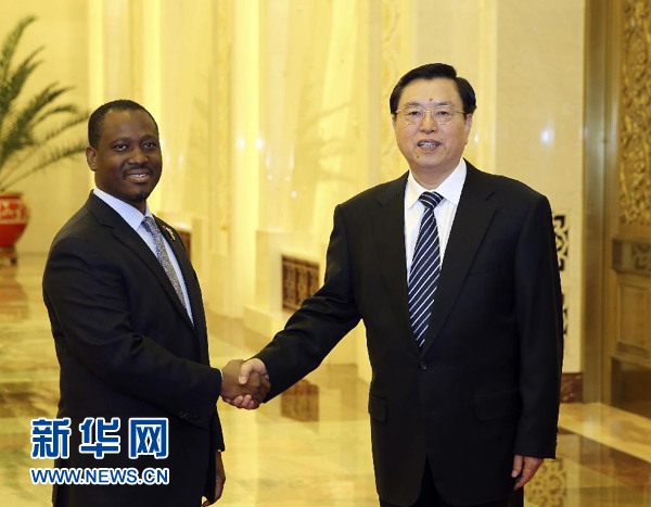 張德江說,今年是中國和科特迪瓦建交30周年。30年來,兩國關系發展順利,經貿合作穩步增長,文化、地方等領域交流十分活躍。中國高度重視發展中科關系,是科特迪瓦的可靠朋友和真誠伙伴。當前,兩國正致力于實現各自國家的宏偉藍圖,中方愿與科方攜手努力,本著互利共贏的原則,深化經貿合作,積極參與科特迪瓦的經濟建設,促進共同發展。