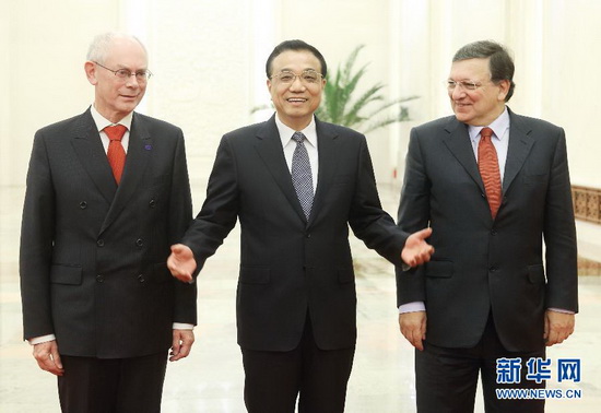 李克強說,中方高度重視中歐關系。昨天習近平主席與你們進行了會見。今天我與兩位主席共同主持中歐領導人會晤,恰逢中歐建立全面戰略伙伴關系十周年這一具有歷史意義的時刻。歐盟是多極化世界中的重要一極,也是中國實現現代化進程中的重要合作伙伴,中歐加強合作符合彼此共同利益,向世界發出了和平、發展、合作的積極信息。