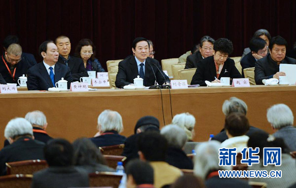 11月25日,中國(guó)美術(shù)家協(xié)會(huì)第八次全國(guó)代表大會(huì)在北京召開(kāi)。中共中央政治局委員、中宣部部長(zhǎng)劉奇葆出席開(kāi)幕式并講話(huà)。 新華社記者 李濤 攝