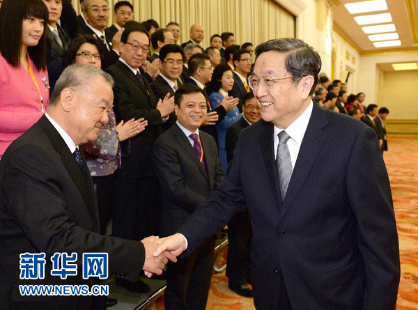 12月9日,中共中央政治局常委、全國政協主席俞正聲在北京會見出席第四屆ECFA海峽兩岸暨香港民間經貿合作論壇的代表。新華社記者 馬占成攝