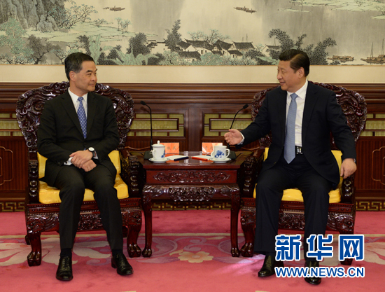 習近平說,你和特區政府認真貫徹穩中求變、民生為先的施政方針,著力解決經濟社會發展中存在的突出問題,取得了初步成效。中央政府對你和特區政府的工作是充分肯定的。
