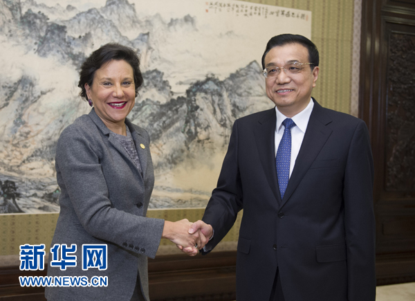 李克強說,中美建交35年來合作不斷擴大,共同利益遠大于分歧。希望雙方始終從大局和長遠看待兩國關系,抓住機遇,深挖合作潛力,尊重彼此核心利益和重大關切,妥善處理分歧,促進中美關系健康穩(wěn)定發(fā)展。