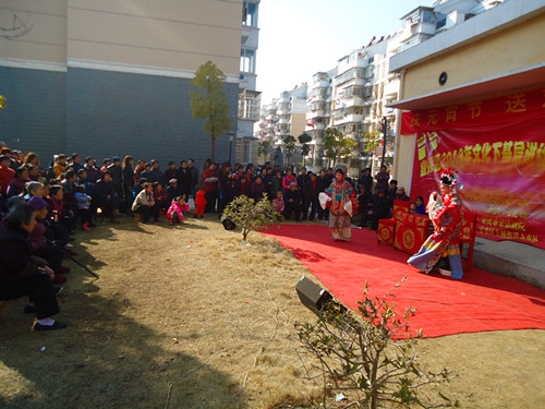 2月23日下午,宜秀區葉祠還建安置小區內熱鬧非凡,數百名居民群眾相聚一起,美美地“享用”宜秀區文廣新局主辦的宜秀區民生工程 “文化惠民 送戲下鄉”文藝大餐。