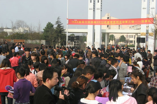 3月9日上午,由安慶市人社局、市廣播電視臺主辦,宜秀區人社局承辦的《1584政風行風熱線》2013走基層系列活動三——“送春風”活動于安慶大學東大門廣場順利舉辦。市財政局副局長王思豐,市人社局副局長許建南,市就業局局長朱世遙、書記李偉國,區政府副區長程海東一行親臨現場。活動現場人潮涌動,氣氛熱烈。