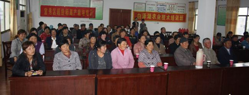 在黃石村村部,能容納90人的三樓會議室座無虛席,參加培訓的農民紛紛表示,在陰雨天開展技術培訓,既學到了知識,又未占用農業生產時間,大家積極性很高。中午培訓間隙,專家們現場指導雨天秧田管理要點。當天晚上,區農業局會同該鄉農委召集了30多位農民,聚集在獨秀村建新組黃自發家,就當前農業生產技術要點予以詳細講解。