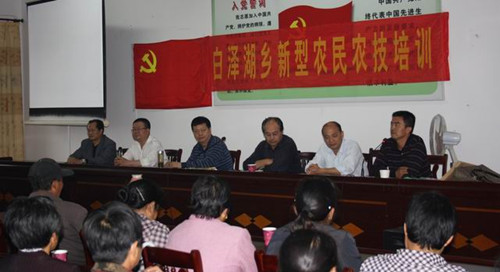 5月16日,區農業局利用陰雨天氣和晚上等農閑時間,組織白澤湖鄉黃石村和獨秀村農民開展水稻育秧、棉花苗期管理等技術培訓。