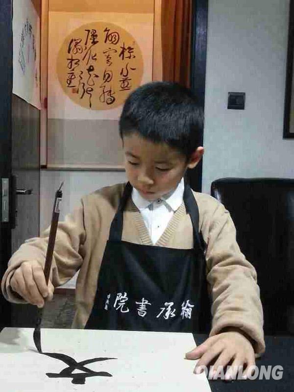 資料圖片:張圣博在上書法課(千龍網(wǎng)發(fā))。