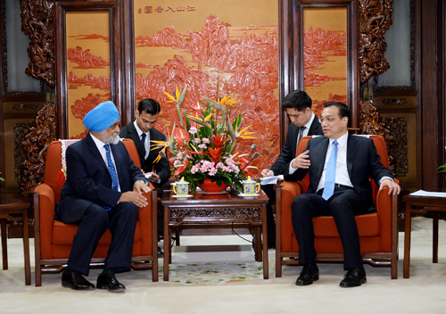 國務院總理李克強19日下午在中南海紫光閣會見來華出席第三次中印戰略經濟對話的印方主席阿魯瓦利亞。 李克強表示,中印互為重要鄰國,雙邊關系發展勢頭良好。今年是“中印友好交流年”,中方愿與印方共同努力,鞏固政治互信,擴大全方位合作,將中印戰略合作伙伴關系推上新水平。 李克強指出,當前中印都面臨加快經濟轉型、將發展經濟、改善民生同節能環保、促進可持續發展相結合的共同任務。希望雙方發揮好兩國25億人口的獨特巨大優勢,抓住發展機遇,深化城鎮化、信息通信、高技術等領域合作,將中國高鐵、能源等裝備制造的技術和成本優勢同印度市場需要緊密結合,攜手推進孟中印緬經濟走廊建設,促進區域互聯互通和一體化。 阿魯瓦利亞表示,去年兩國總理實現互訪,極大促進了雙邊關系發展。當前印中合作面臨難得機遇,印方愿與中方一道,辦好“印中友好交流年”慶;顒樱訌姰a業園區、鐵路、能源、城鎮化等合作,推動印中關系發展取得新成果。印方歡迎更多中國企業赴印投資,將為此提供便利。 |