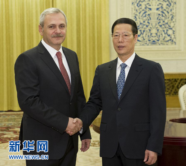 3月24日,國務院副總理張高麗在北京人民大會堂與羅馬尼亞第一副總理兼地區(qū)發(fā)展和公共行政部長德拉格內亞舉行會談。 新華社記者黃敬文攝