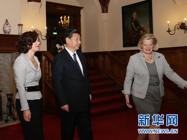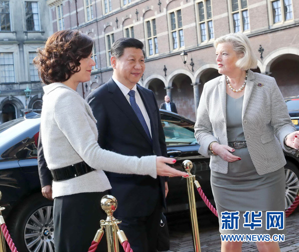 新華網海牙3月24日電(記者陳贄 潘治)國家主席習近平24日在海牙會見荷蘭議會一院議長布勒克-克諾爾和二院議長范米爾滕伯格。