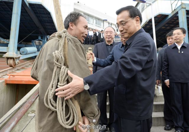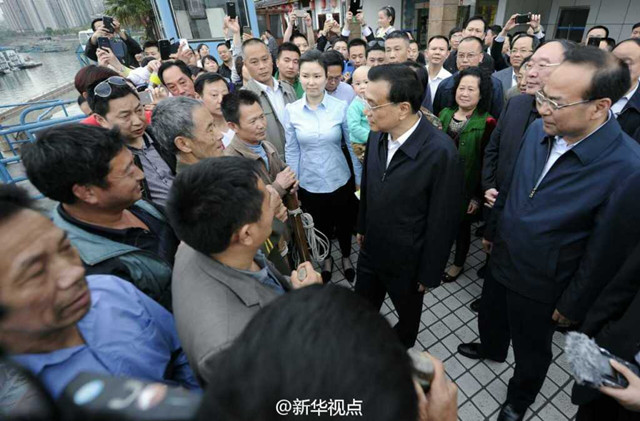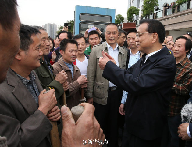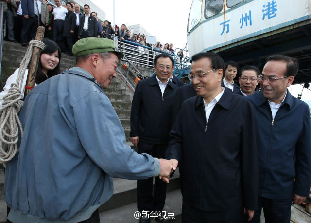 27日下午,在重慶萬州考察的李克強總理來到港口碼頭和群眾親切交流?吹60歲的“棒棒”何紹強,李克強走過去接過他手中的扁擔說:“已經磨得很潤滑,看來干這行有年頭了。”他還關切地撫著老何的腰,問他腰背怎么樣?叮囑他干活時注意身體,千萬保護好腰。