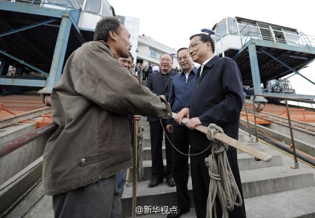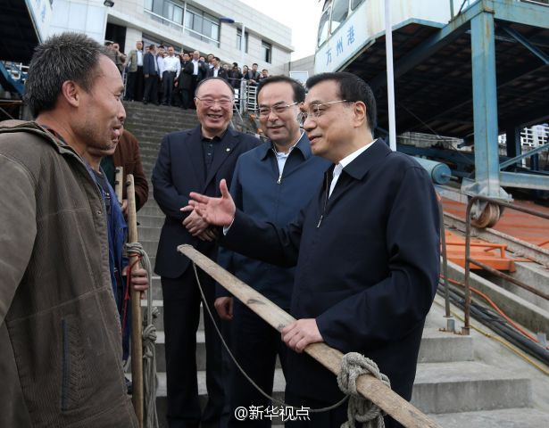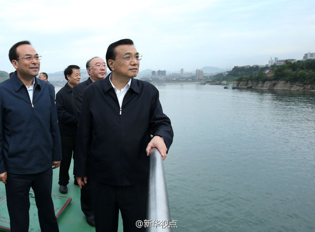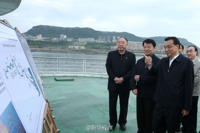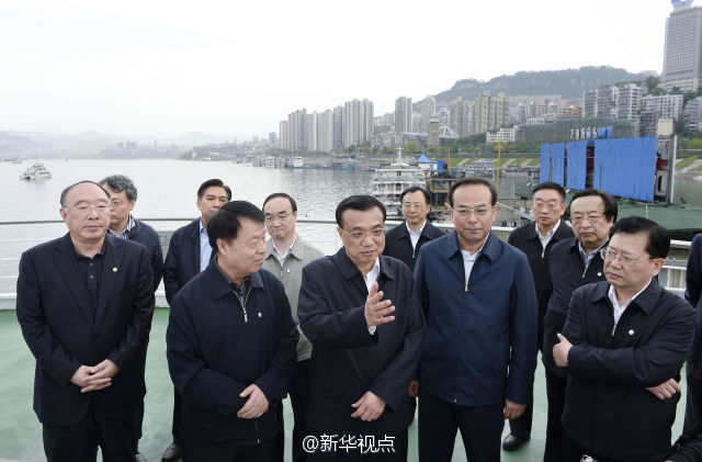 李克強總理27日在重慶萬州港乘船考察長江黃金水道。他來到輪船甲板上,認真觀察港口基礎設施和航道建設現(xiàn)狀,與有關部門負責人共商長江黃金水道未來發(fā)展大計。李克強說,長江黃金水道是貫通東中西部、通航能力最強的航道,要用黃金水道串起長江經濟帶“珍珠鏈”。
