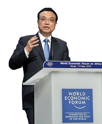 2014 年5 月8 日, 李克強在第24 屆世界經(jīng)濟論壇非洲峰會上致辭。