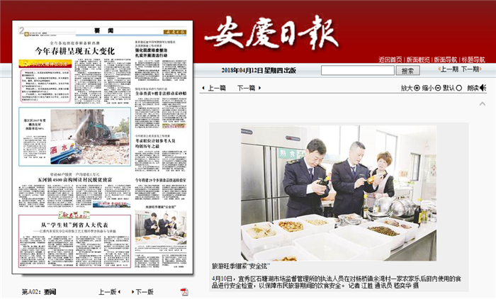 [安慶日報] 旅游旺季繃緊“安全弦”
