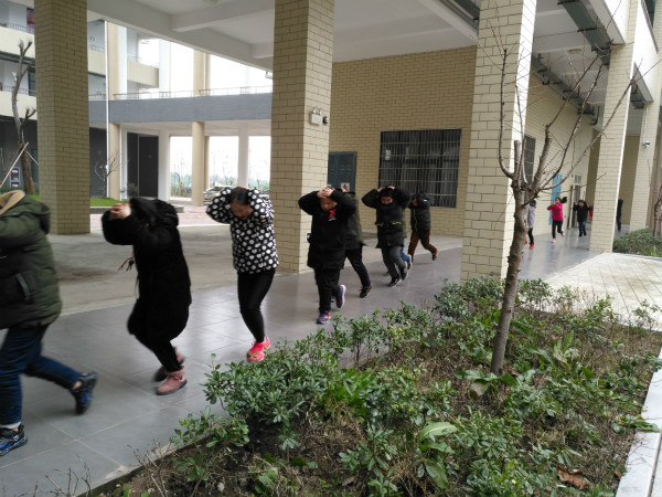 下午1點50分隨著校園內響起警報聲,各位老師立即到達指定崗位,引導樓內學生快速疏散,各班任課教師帶領學生抱著頭、彎著腰,沿著學校指定樓梯口快速前行,有序撤離到操場的安全位置,用時2分15秒,然后各班主任清點人數,并層層向上匯報,140多名師生全部安全疏散完畢。隨后,學校的安全負責人對安全疏散演練活動進行了總結,并對存在的問題提出新的要求和期望。