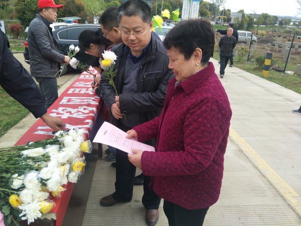 適逢周末,很多人都攜一家老小前來掃墓祭祖,為了取得更好的活動(dòng)效果,該鄉(xiāng)將此次活動(dòng)地點(diǎn)選在了眾多祭祀群眾上山必經(jīng)之路——芭茅村王家山。志愿者們懸掛起文明祭祀宣傳橫幅,吸引了來往的市民們駐足觀看,同時(shí)向市民們發(fā)放文明祭祀倡議書,向其倡導(dǎo)文明、環(huán)保、節(jié)儉、安全的祭祀方法,如鮮花祭祀、植樹祭祀、公祭悼念等,并邀請他們在宣傳橫幅上簽下自己的姓名,同時(shí)志愿者們還免費(fèi)向市民們發(fā)放菊花以代替塑料假花。