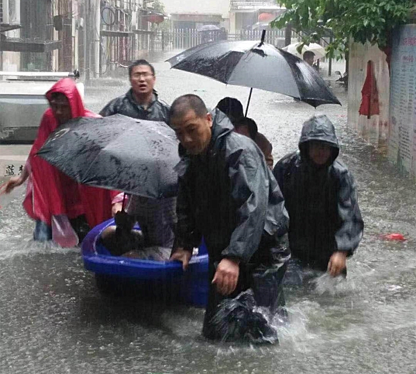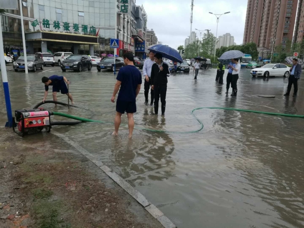 宜秀開發區內澇嚴重,絕大部分道路均出現不同程度積水現象,開發區全員上崗,除參與一線防汛外,還組織了人員對所有企業進行電話通知,要求所有單位在雷雨天氣做好安全生產防護工作,要求處于不安全地帶、存在雨水倒灌漫溢入生產區域及其它重要區域的企事業根據企業應急預案進行處置。25日晚上七點左右,文苑路下穿橋積水已經排空,中山大道高速公路下穿橋正在組織排水作業。黨員干部和交警三大隊干警在中山大道高速下穿橋附近路口設卡值守。組織專業人員對天柱山東路排水管道進行疏通。大橋街道葉祠轄區范圍內各路段的水位持續猛漲,在葉祠二處小區,由于局部雨勢過急,且小區地勢較低,小區內的積水量迅速增多,到25日當天中午,小區一樓住戶家中已經開始進水。街道立即組織安排人員調集沙袋、排水泵等物資到一線,調集了兩輛皮劃艇。區、街道和社區三級黨員干部卷起褲腿,沖到一線,推著小舟將群眾一個一個轉移到了安全區域。由于象山大溝臨近安慶機場,為確保萬無一失,街道迅速組織人員攔水壩進行了加固。小區內的各地下停車庫也面臨著被水淹的危險。一方面用沙袋堵住進水口,做好防水措施,另一方面用排水泵排水,避免了車庫進水。大龍山鎮鎮總鋪社區組織人員對南山園小區內澇情況模排,安排水泵排水,設置禁示標志。與此同時,楊橋鎮、白澤湖鄉、羅嶺鎮、五橫鄉等地積極應對暴雨天氣,采取有力措施保障人民群眾生命財產安全。