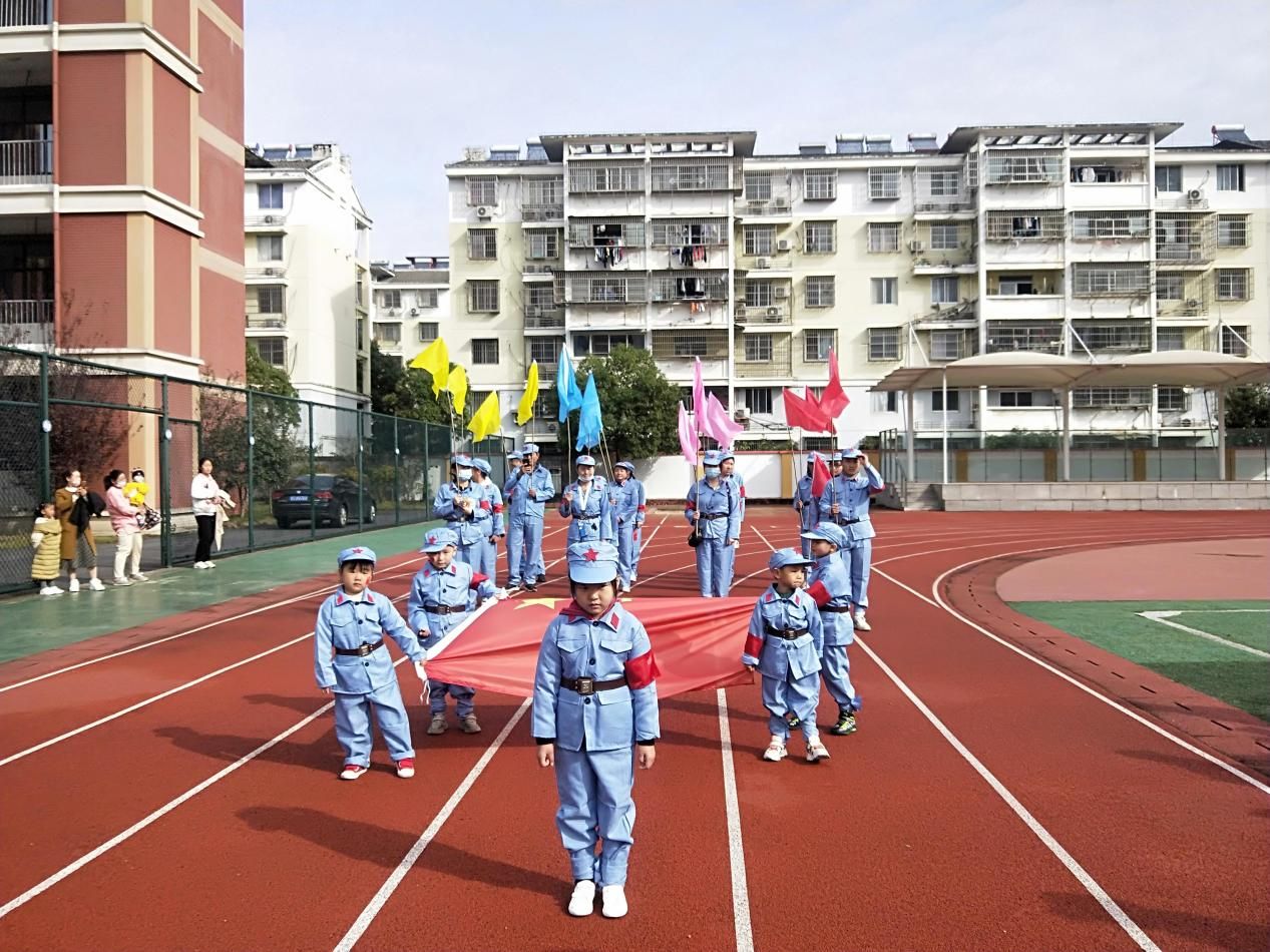 學(xué)黨史,頌黨恩,首先出場的是國旗隊,小小護(hù)旗手們手擎國旗,邁著“堅實”的步伐,鮮艷的五星紅旗緩緩入場,激越的《運動員進(jìn)行曲》在校園回蕩,緊隨其后的各班級運動員代表方隊,廣大師生還精心編排了精彩的入場表演,響亮的口號伴隨著有力的步伐,或歌或舞、或演或說,以自己的方式表達(dá)對黨的無限熱愛與真誠祝福。在嘹亮的音樂聲中,鮮艷的五星紅旗在陽光的映襯下格外壯麗。家長和小朋友們激昂地唱著國歌,表達(dá)著心中的愛國之情。