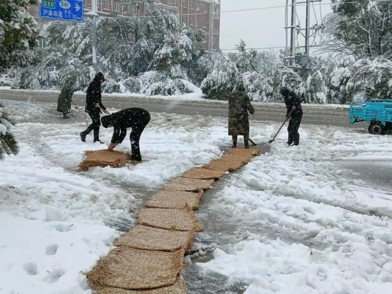 掃雪除冰過程中,大家不畏嚴寒,齊心協力,一鏟一鏟將雪推至路邊,鐵鏟與地面的摩擦聲此起彼伏,奏響一首掃雪除冰進行曲。不一會兒,大家臉和手都凍紅了,卻沒有一個人抱怨。大家一邊掃著雪,一邊提醒著過路的行人注意安全。道路上、臺階上、廣場上,到處呈現著一幅熱火朝天的掃雪鏟冰景象。清掃路雪,清理斷裂樹枝,鋪墊防滑草墊,每一處微小細節中都體現著濃厚的人文關懷,給寒冷的冬日增添了一份溫暖。
